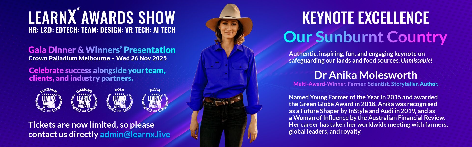 Due to high demand once again, tickets are now limited. Please contact the awards team directly admin@learnx.live or +61 457 532 769